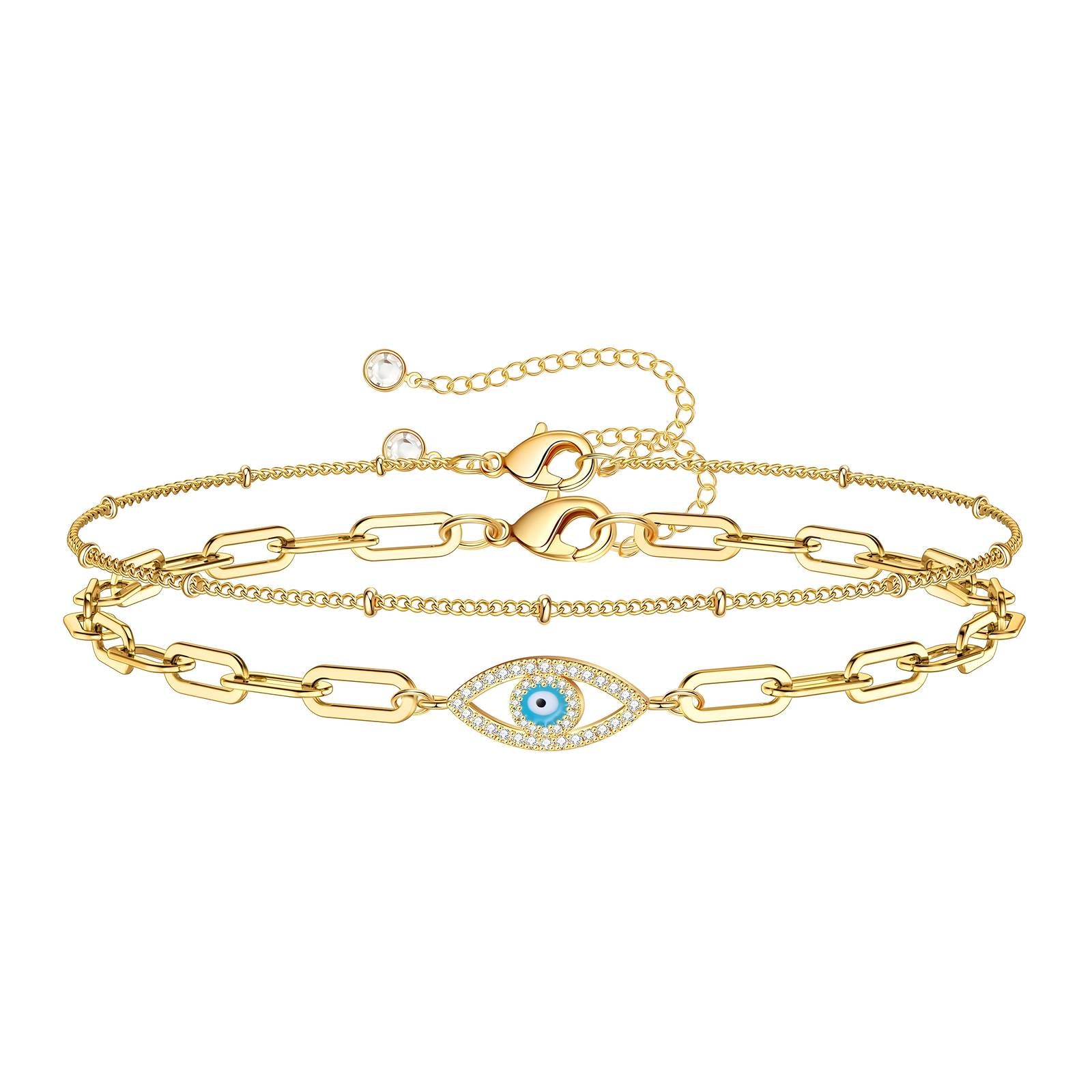 Evil Eye Bracelet, 18K Gold Plated Steel