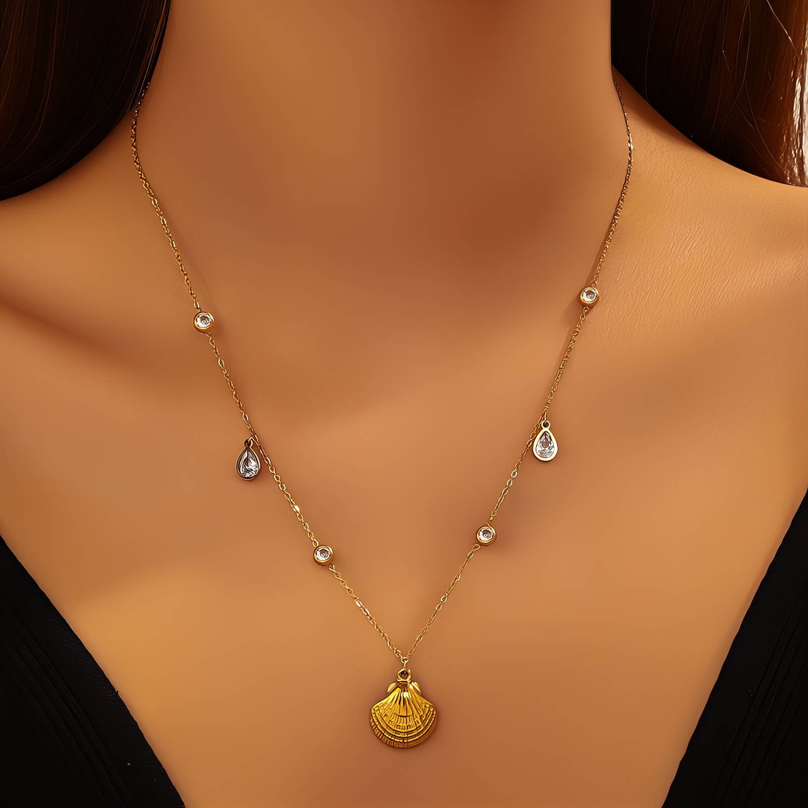 Seashell Necklace, 18K Gold Plated Steel