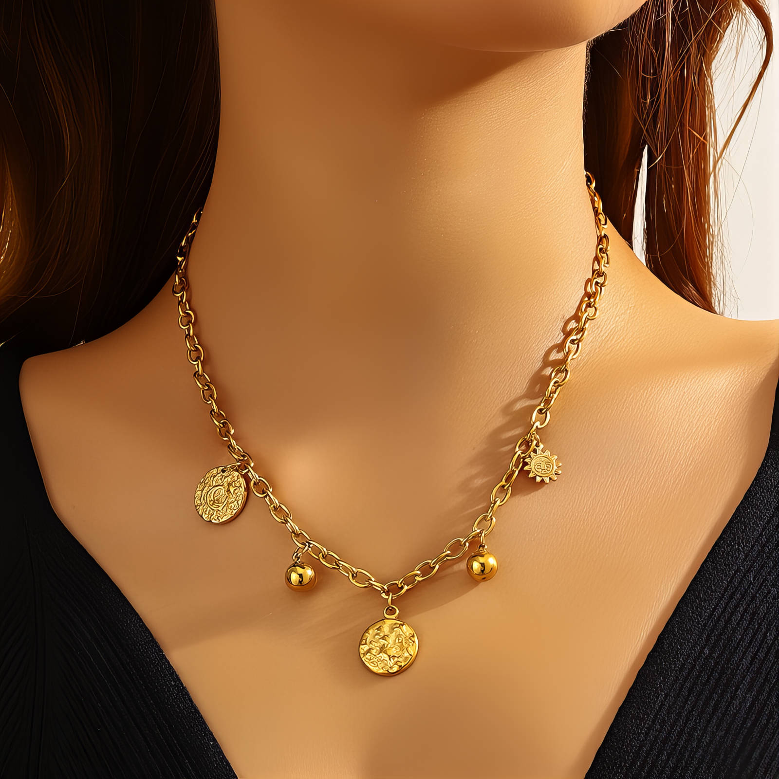 Crescent And Star Necklace, 18K Gold Plated Steel